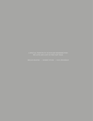 A SPECIAL TRIBUTE TO OUR BOARD MEMBERS WHO WE LOVE AND LOST IN THE PAST YEAR. MEGAN SHAPIRO | ROBERT STONE | PAUL WEISSMAN